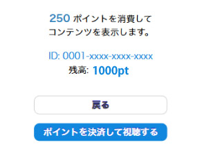 IDには1000ポイントが予め入っています。250ポイントを消費して動画を視聴できます。「ポイントを消費して視聴する」を押してください