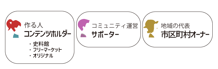 役割は大きくコンテンツホルダー、サポーター、市区町村オーナーの3つに分けられます。